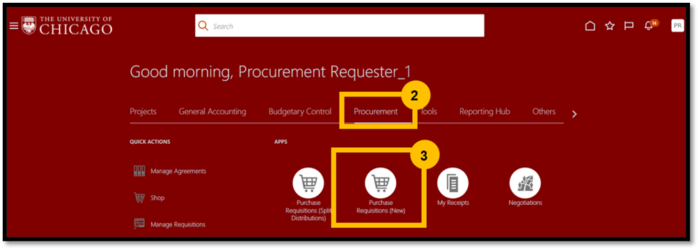 - Navigate and select the Procurement module.