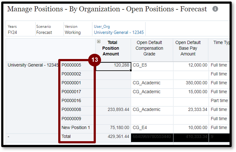 8. Validate that the forecast amount is reflected in the Total Position Amount column.
