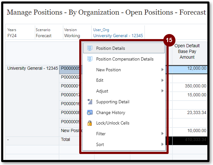 6. Right-click the first column in the Position Detail – Base Pay section.