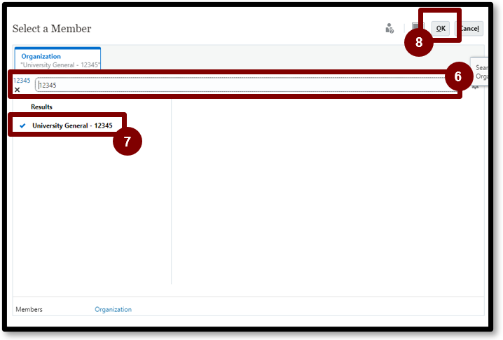 a. NOTE: Before right-clicking, click on a member in the dimension closest to the grid to highlight the row in blue, then right-click.