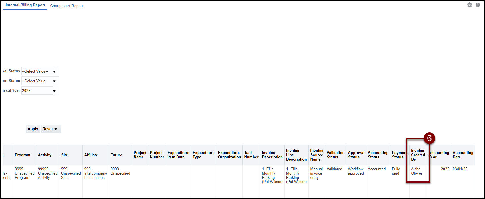 - Identify who created an Internal Billing Invoice