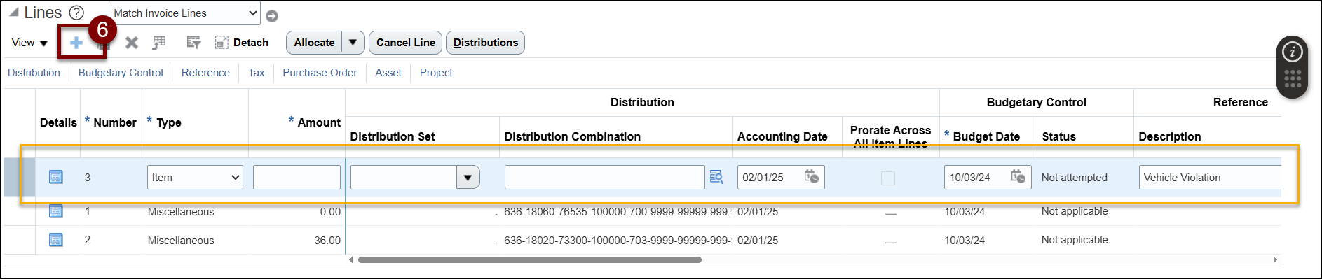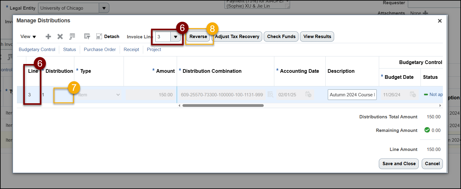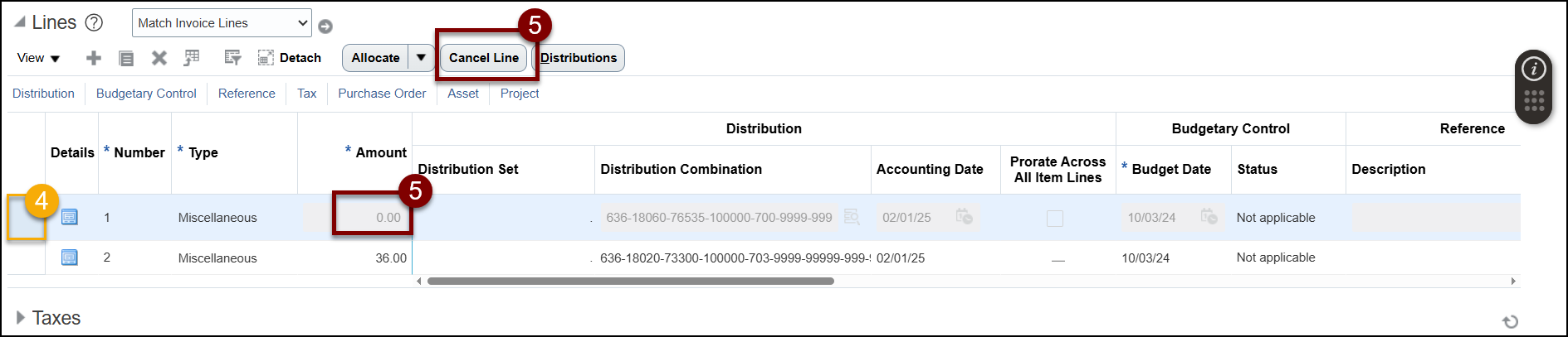 Once you have identified the error, follow these steps to correct the error(s) by Canceling a Line and then adding a new Line with the correct information. You can also make edits by Editing the Distributions.