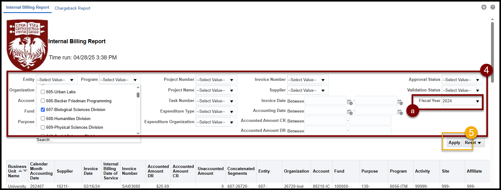 - Business Unit: University Internal Billing