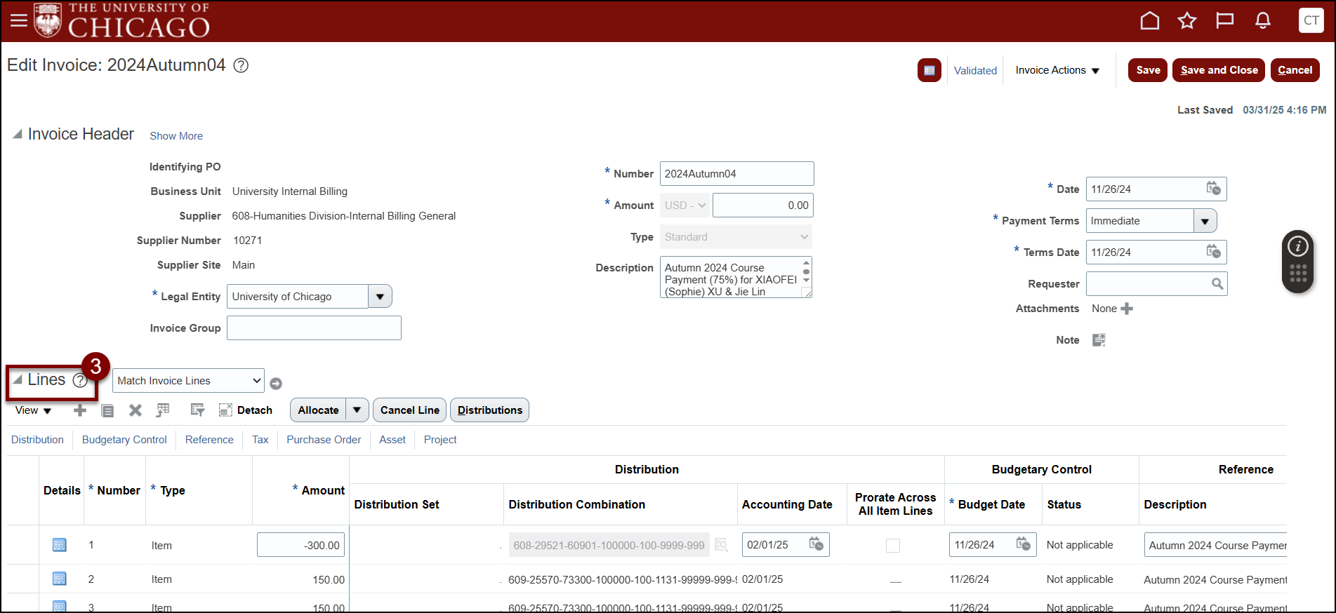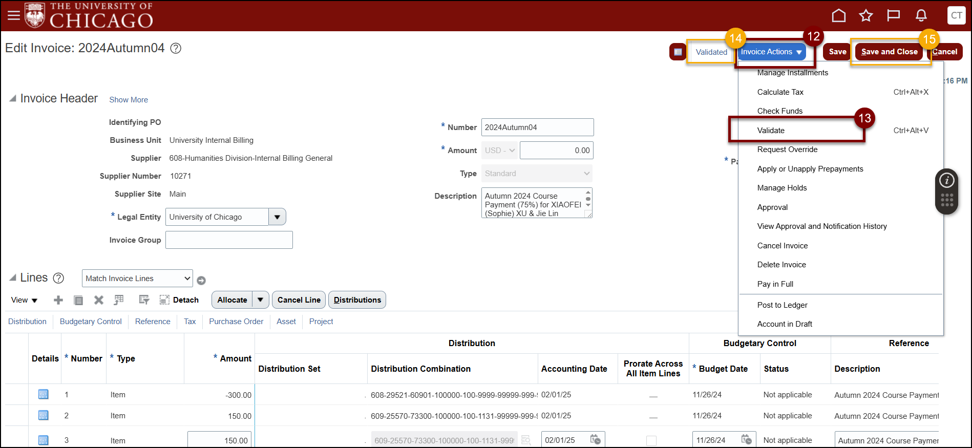 - How to Correct an Internal Billing Invoice - Edit Distributions