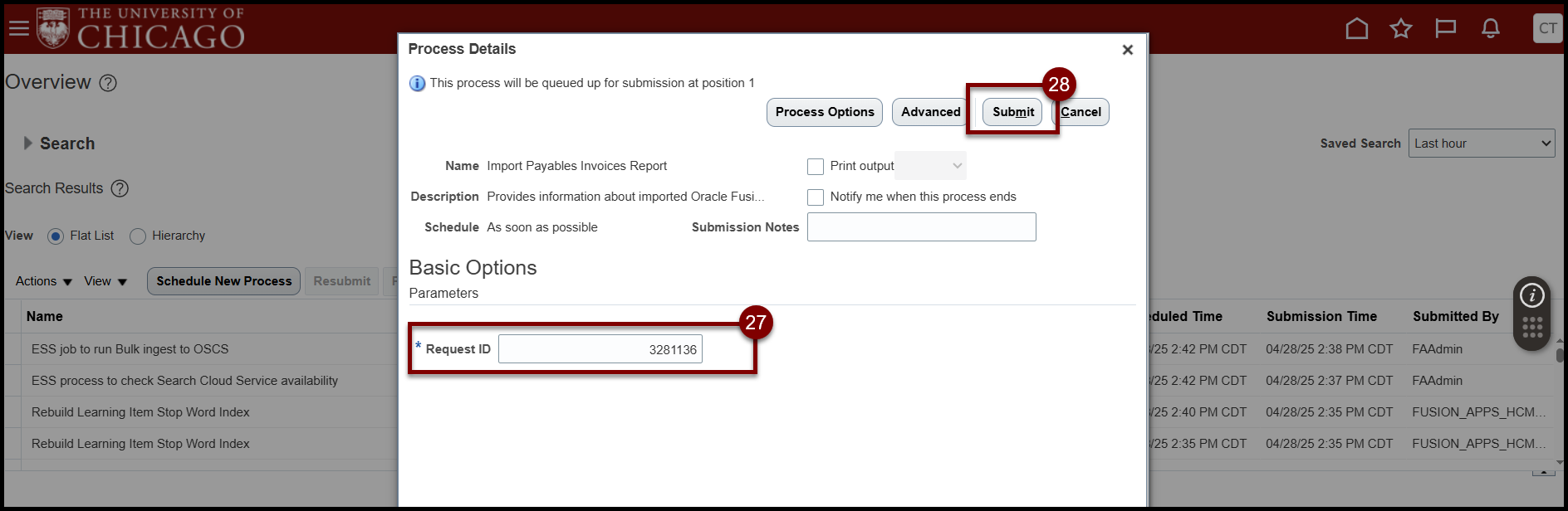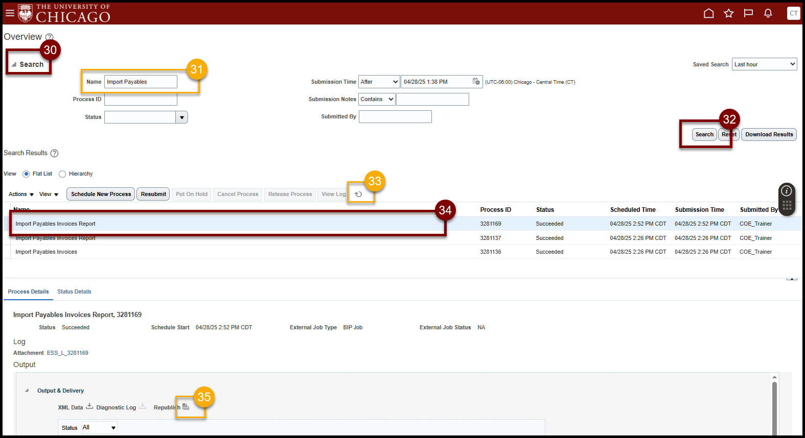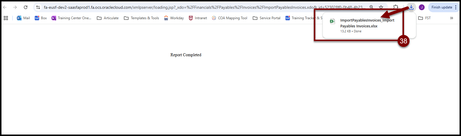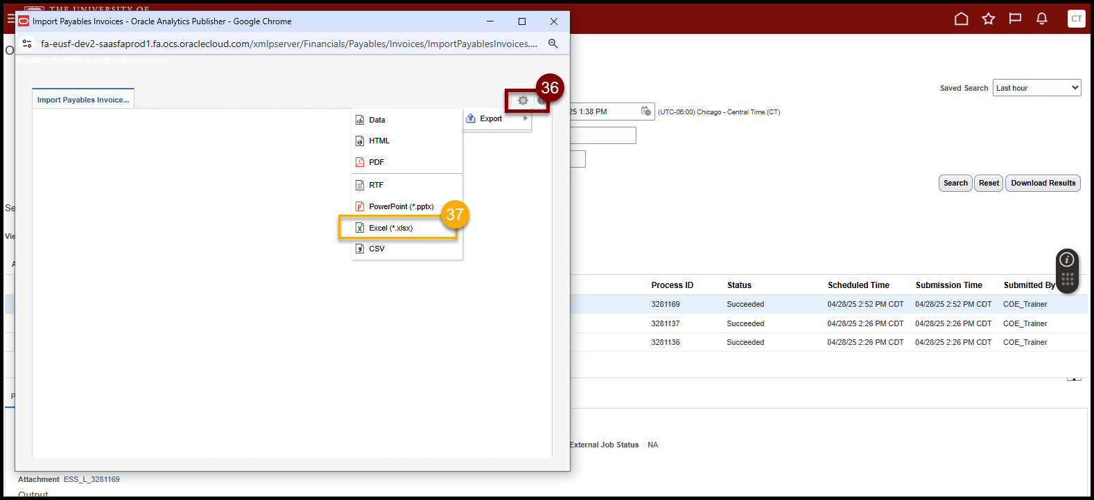 - Select Refresh icon until Import Payables Invoices Report shows a Status of Succeeded.