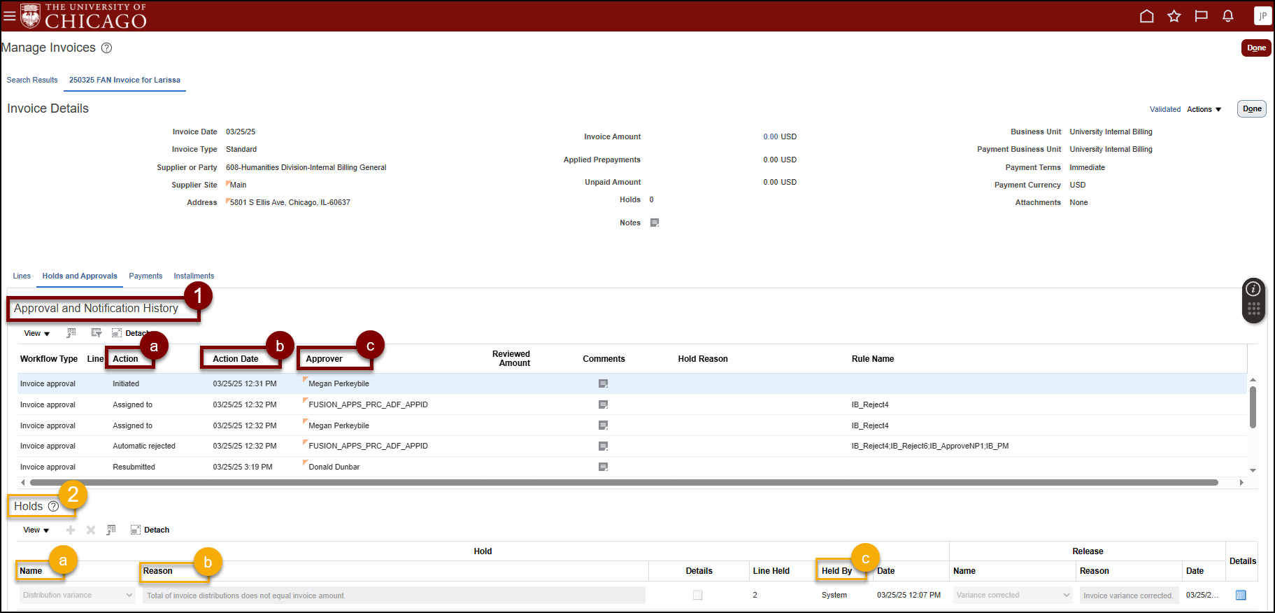 - Review Approval and Notification History in the Holds and Approvals tab.