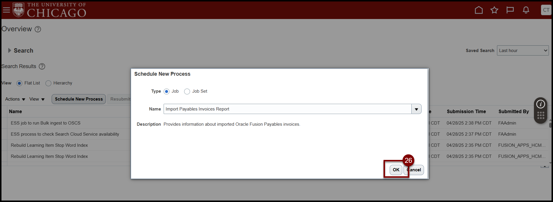 - Select OK in the Schedule New Process window.