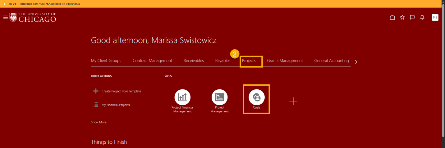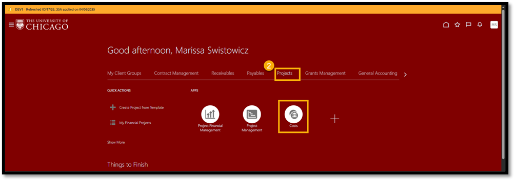 - Select Projects and then choose Costs.