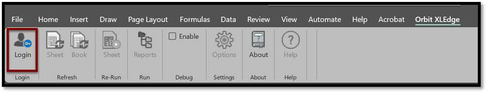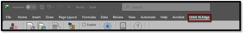 - Open a black Excel Document and select the Orbit XLEdge tab.