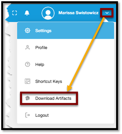 - Select the dropdown next to your name and select Download Artifacts.
